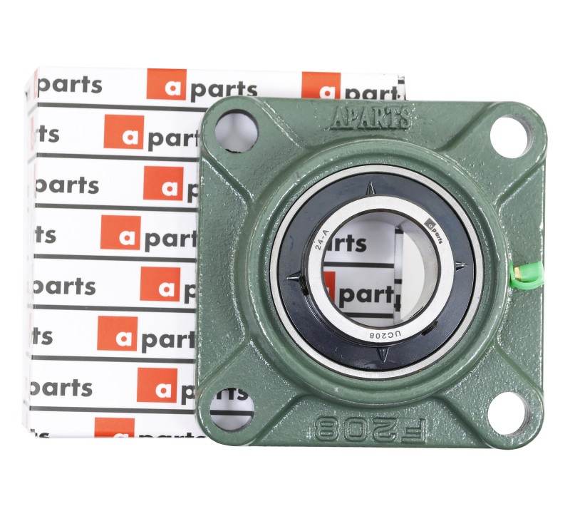 Żeliwne oprawy łożyskowe kompletne z łożyskami, przeznaczone głównie do maszyn rolniczych i innych urządzeń mechanicznych.