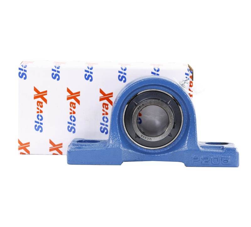 Żeliwne oprawy łożyskowe kompletne z łożyskami, przeznaczone głównie do maszyn rolniczych i innych urządzeń mechanicznych.