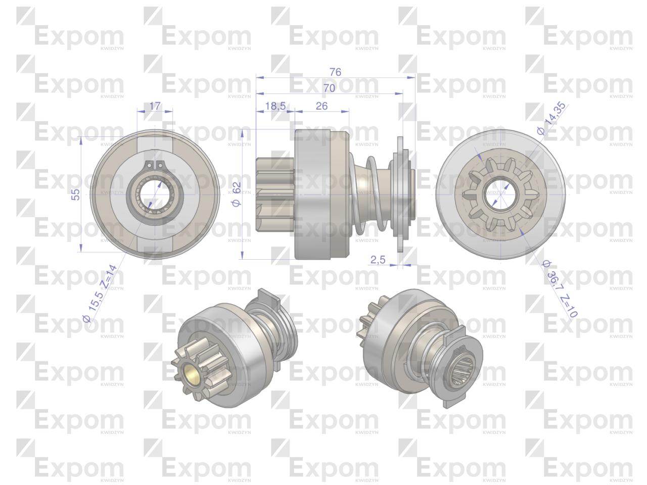 Zespół sprzęgający rozrusznika (bendix),składa się ze sprzęgła jednokierunkowego z zębnikiem i sprężyną. Rolą bendiksu jest połączenie rozrusznika z silnikiem spalinowym, poprzez zębate koło zamachowe, tak aby rozrusznik mógł obracać wałem korbowym silnika. Kiedy silnik spalinowy rozpocznie samodzielną pracę, bendiks uniemożliwia przeniesienie napędu z silnika na rozrusznik, co groziłoby uszkodzeniem rozrusznika.gwarantujemy jakość naszych produktów.