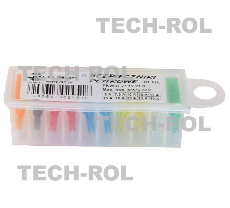 Zestaw bezpieczników płytkowych standard 10 – sztuk 5A-30A LSN