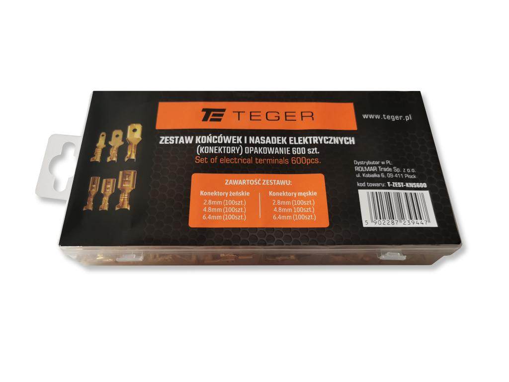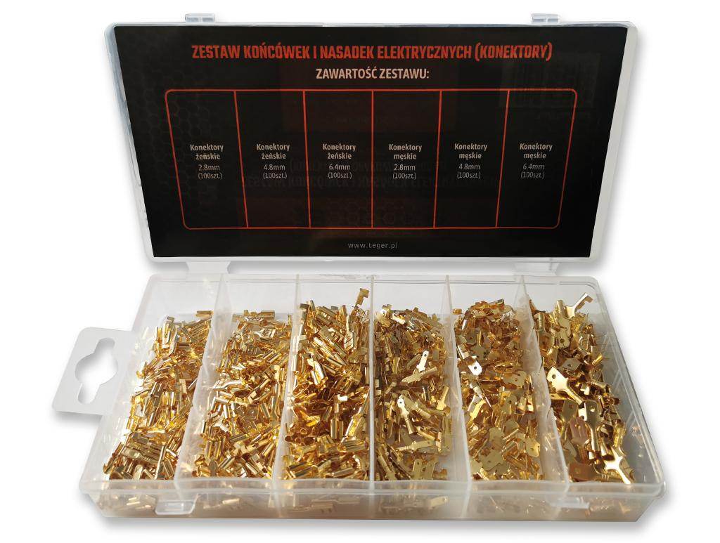 Zestaw końcówek i nasadek elektrycznych (konektory żeńskie i męskie) teger