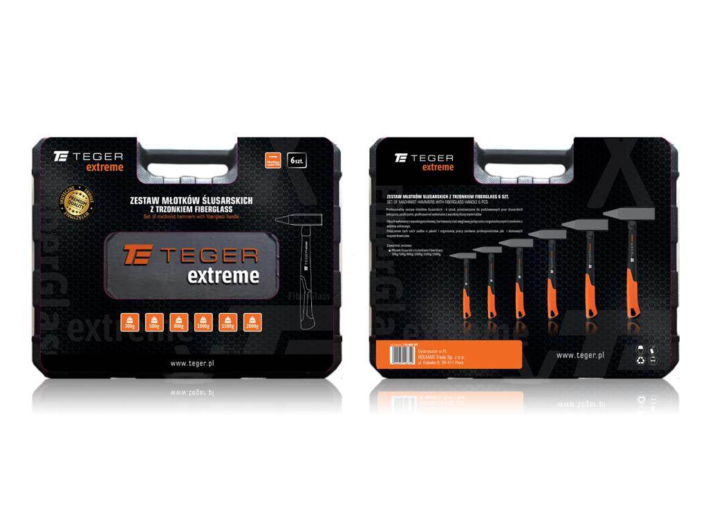 Zestaw młotków ślusarskich z trzonkiem fiberglass 6 el. 300 500 800 1000 1500 2000 g extreme teger