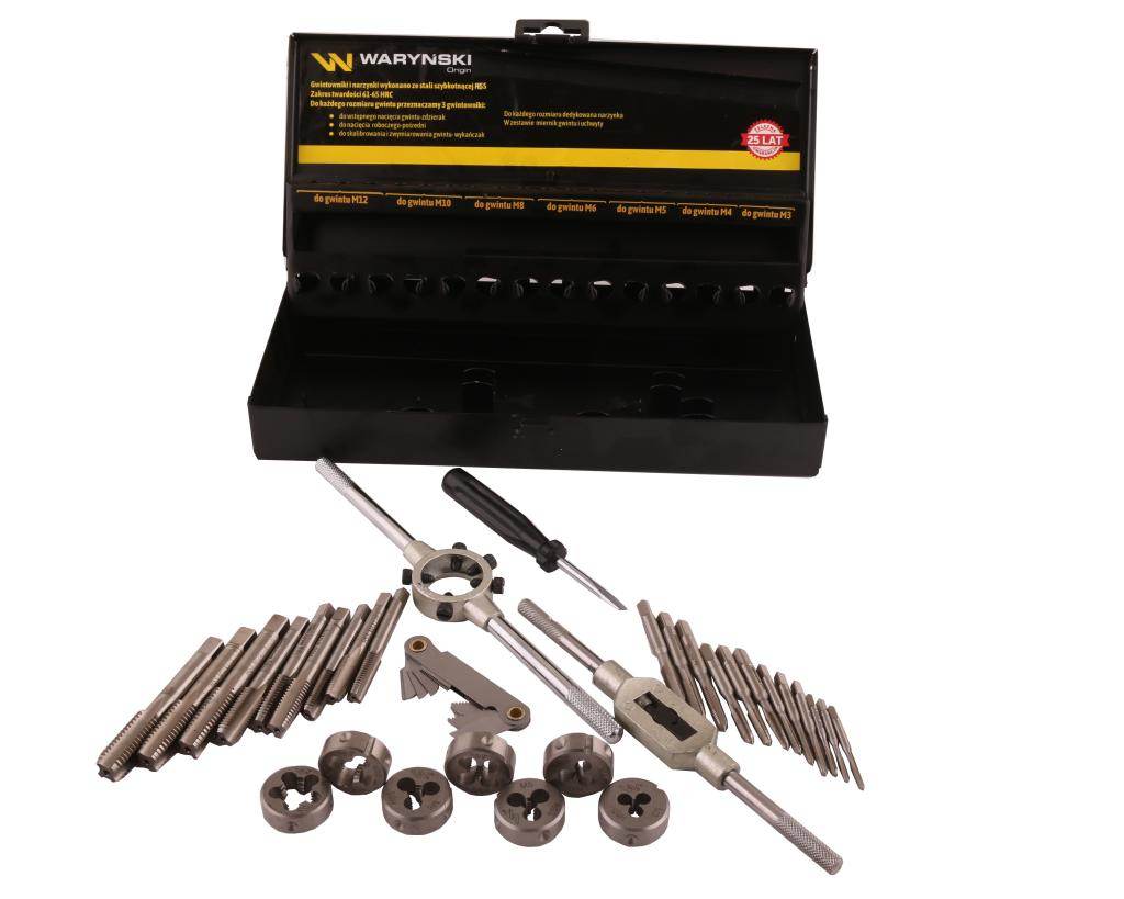 Zestaw narzynek i gwintowników ze stali hss m3-m12 32 el waryński
