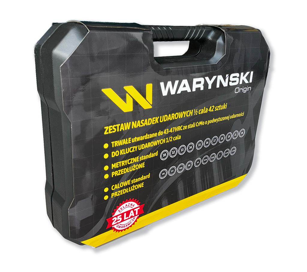 Zestaw nasadek udarowych 1/2 metrycznych i calowych standard i przedłużonych ze stali crmo 42 el. Waryński