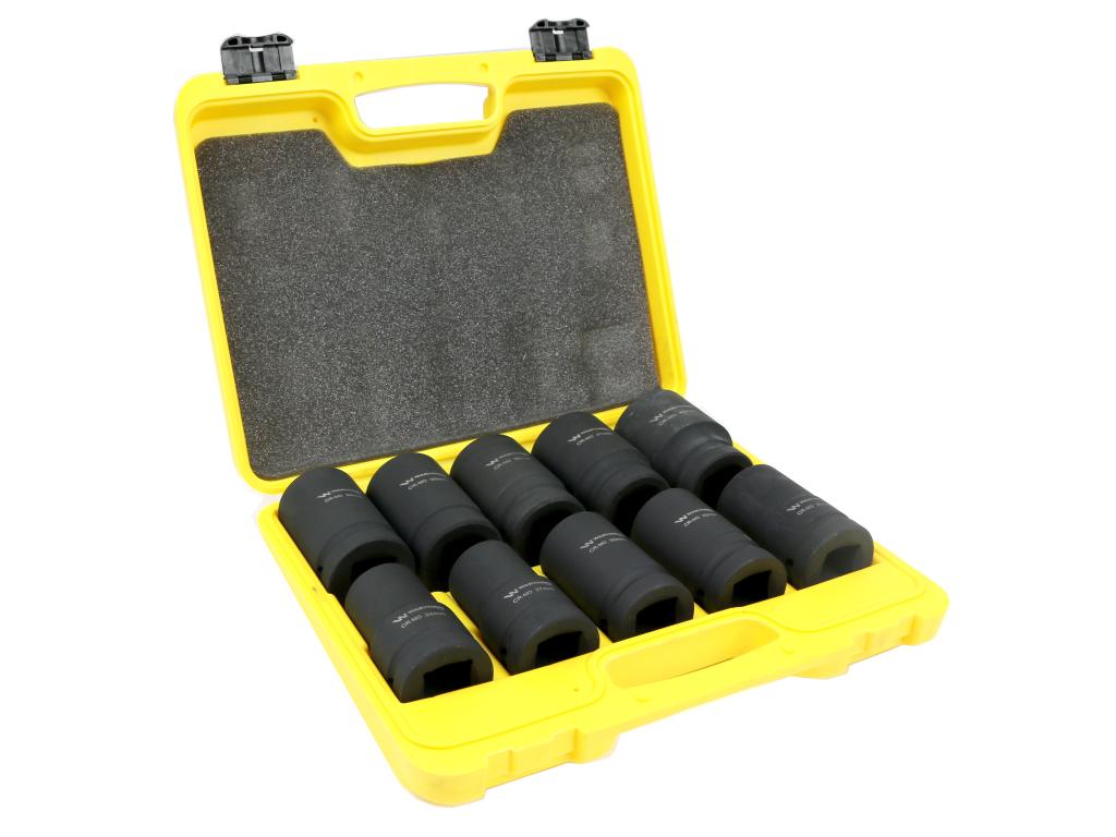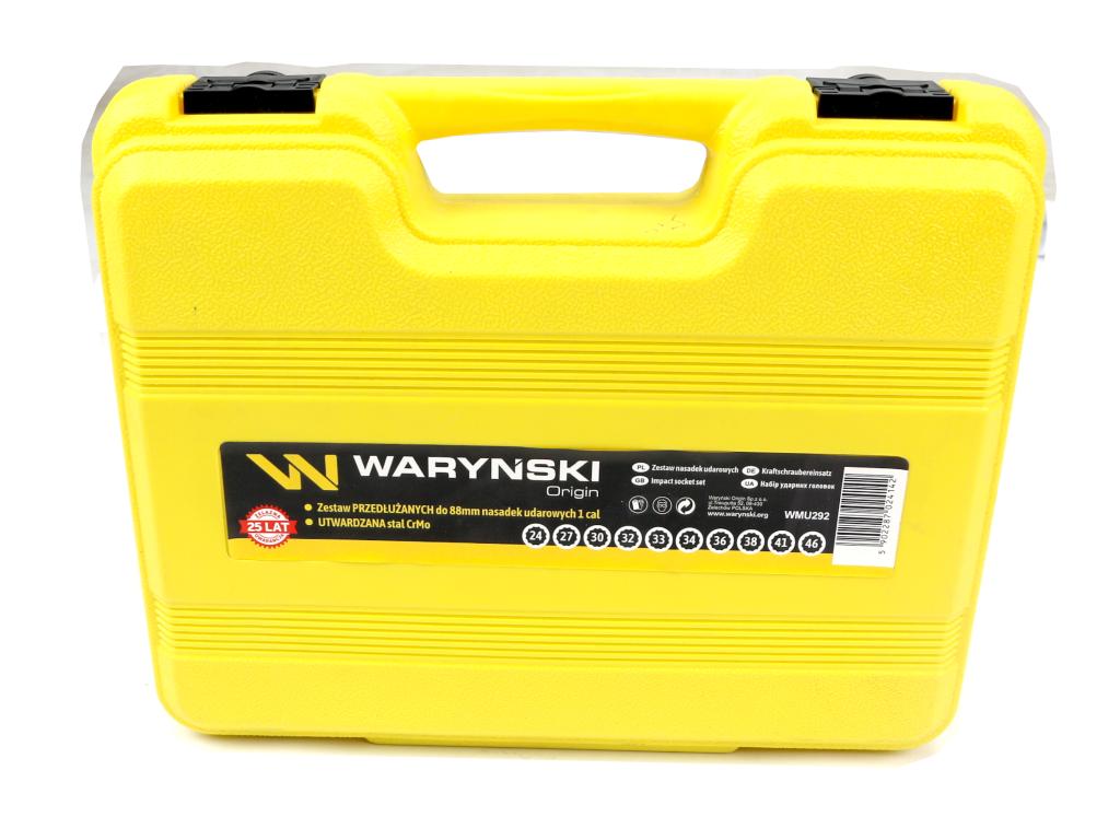 Zestaw nasadek udarowych długich 1″ dwunastokątnych 10 nasadek rozmiary 24 27 30 32 33 34 36 38 41 46 mm ze stali crmo din3129 waryński waryński