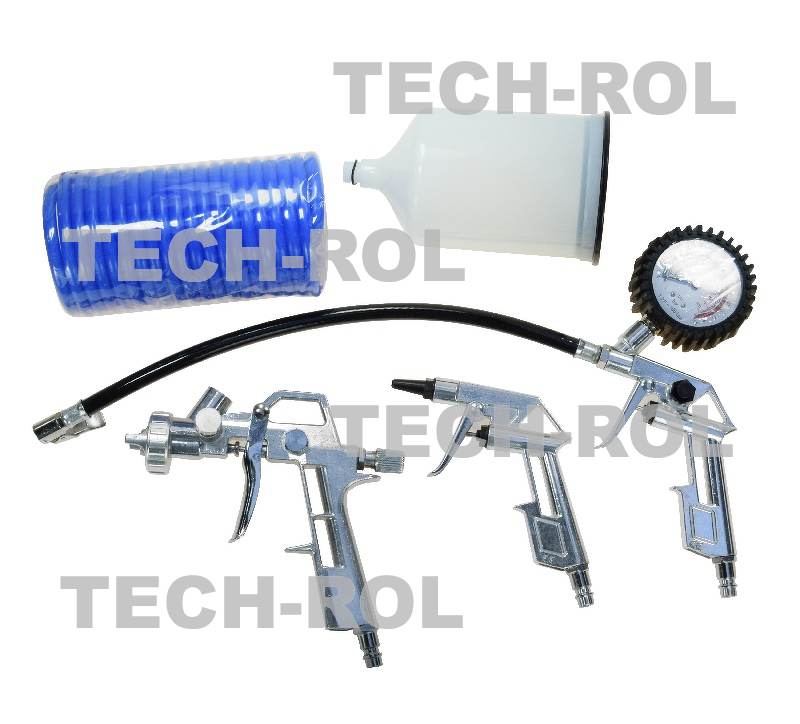 Zestaw pistoletów pneumatycznych 5-elementowy wyposażony w szybkozłączkę 1/4 cala,