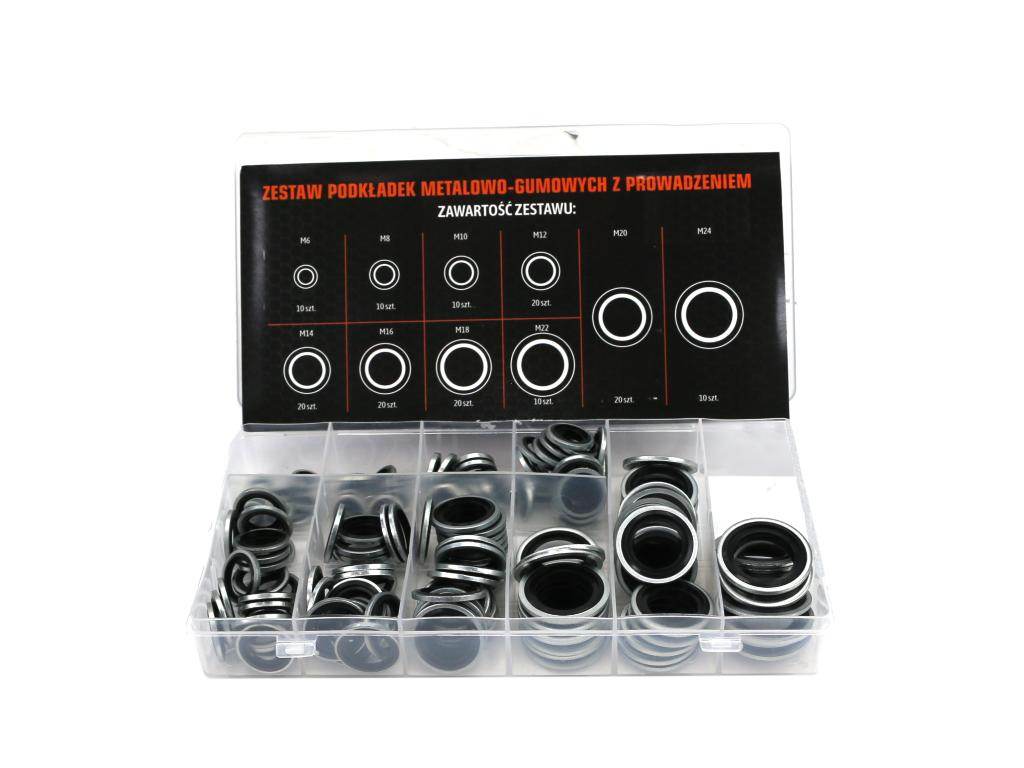 Zestaw podkładek metalowo-gumowych z prowadzeniem 150szt teger