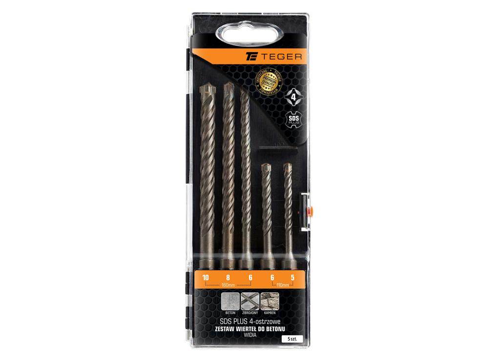 Zestaw wierteł do betonu widia sds plus 4-ostrzowe 5szt teger