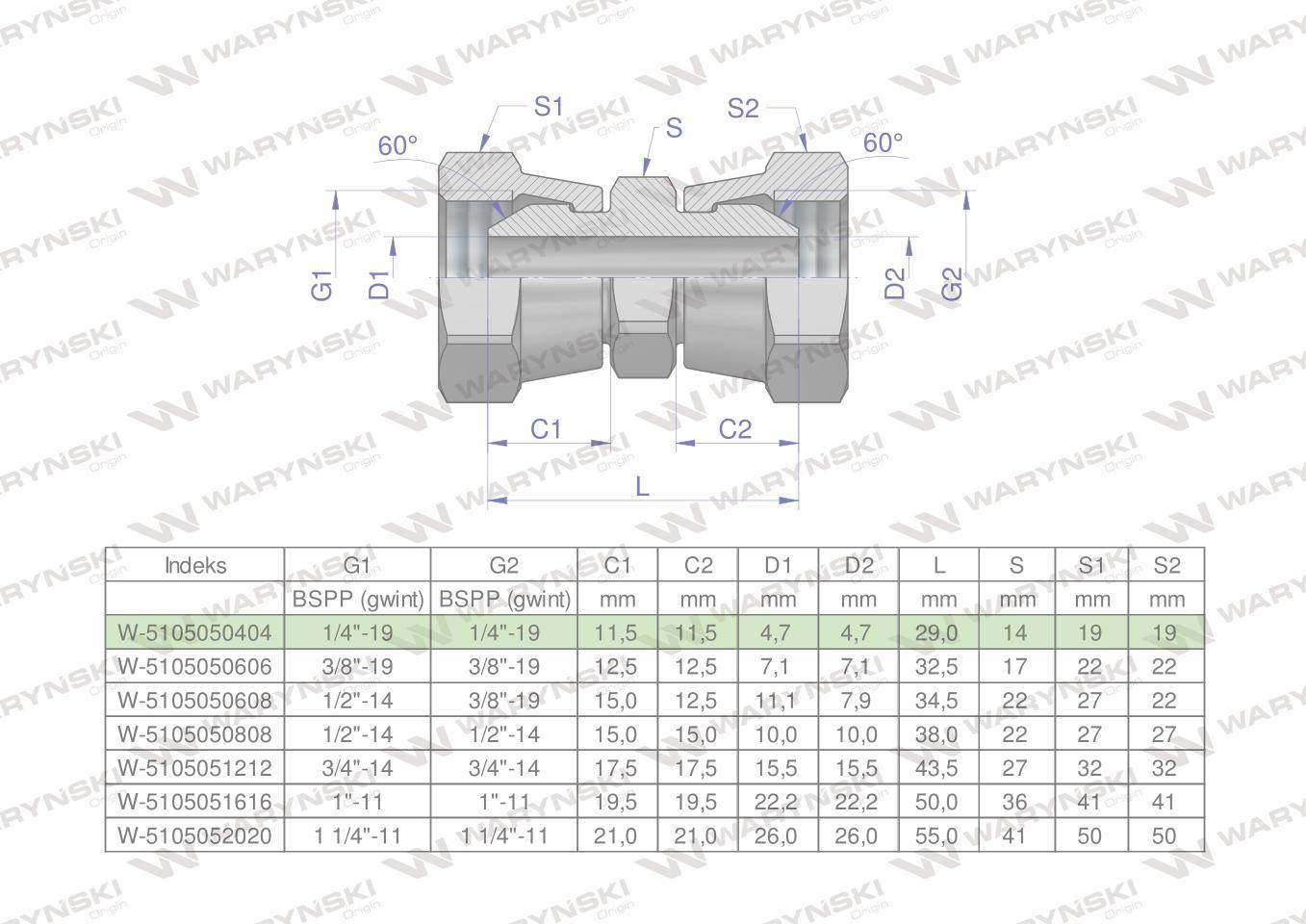 Złączka hydrauliczna calowa aa 1/4″ bsp waryński 2szt