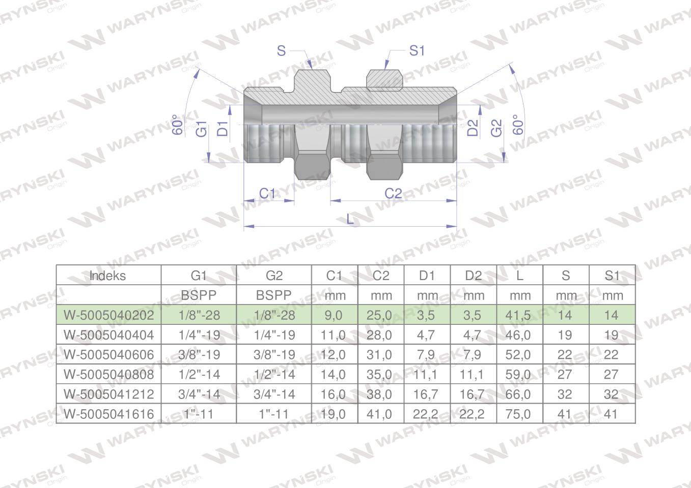 Złączka hydrauliczna calowa grodziowa bb 1/8" bsp z przeciwnakrętką xsv waryński 2szt