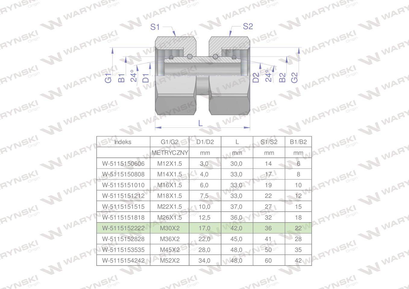 Złączka hydrauliczna metryczna aa m30x2 22l waryński