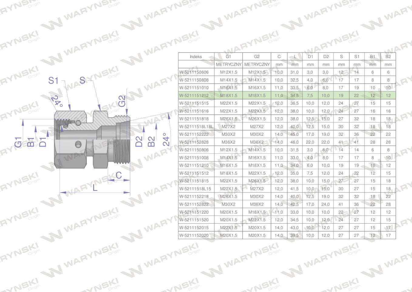 Złączka hydrauliczna metryczna ab xkor a-m18x1.5 12l b-m18x1.5 12l waryński 5szt