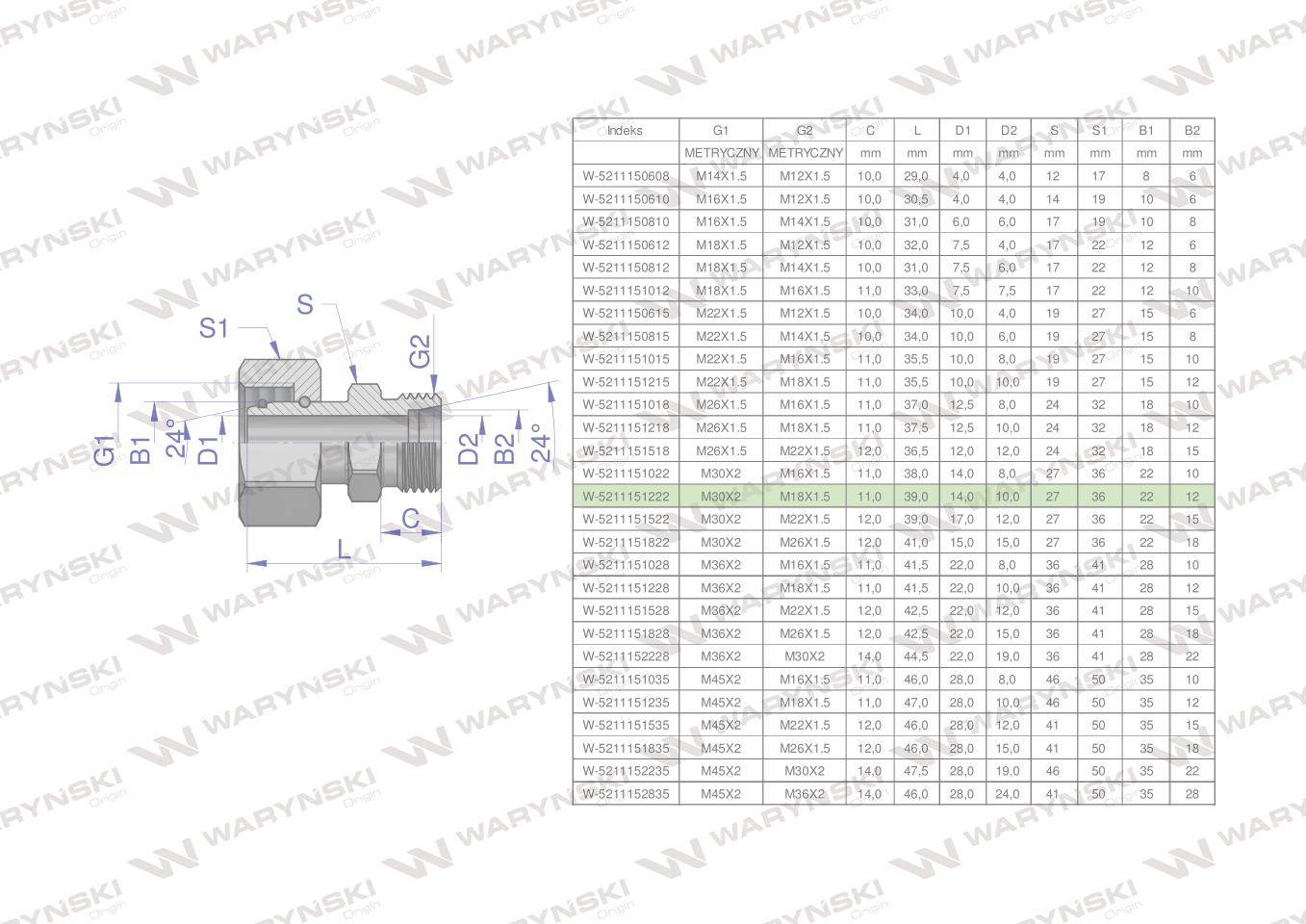 Złączka hydrauliczna metryczna ab xkor a-m30x2 22l b-m18x1.5 12l waryński