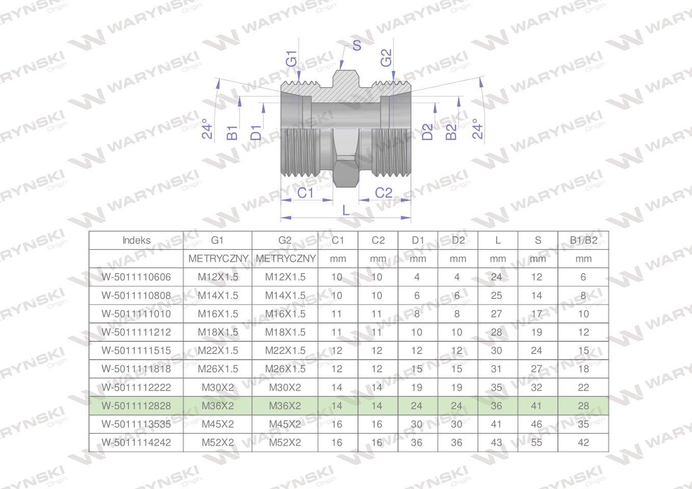 Złączka hydrauliczna metryczna bb m36x2 28l xg waryński 2szt