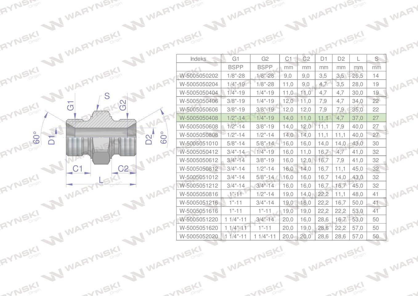 Złączka hydrauliczna redukcyjna calowa bb 1/4″x1/2″ bsp waryński 5szt