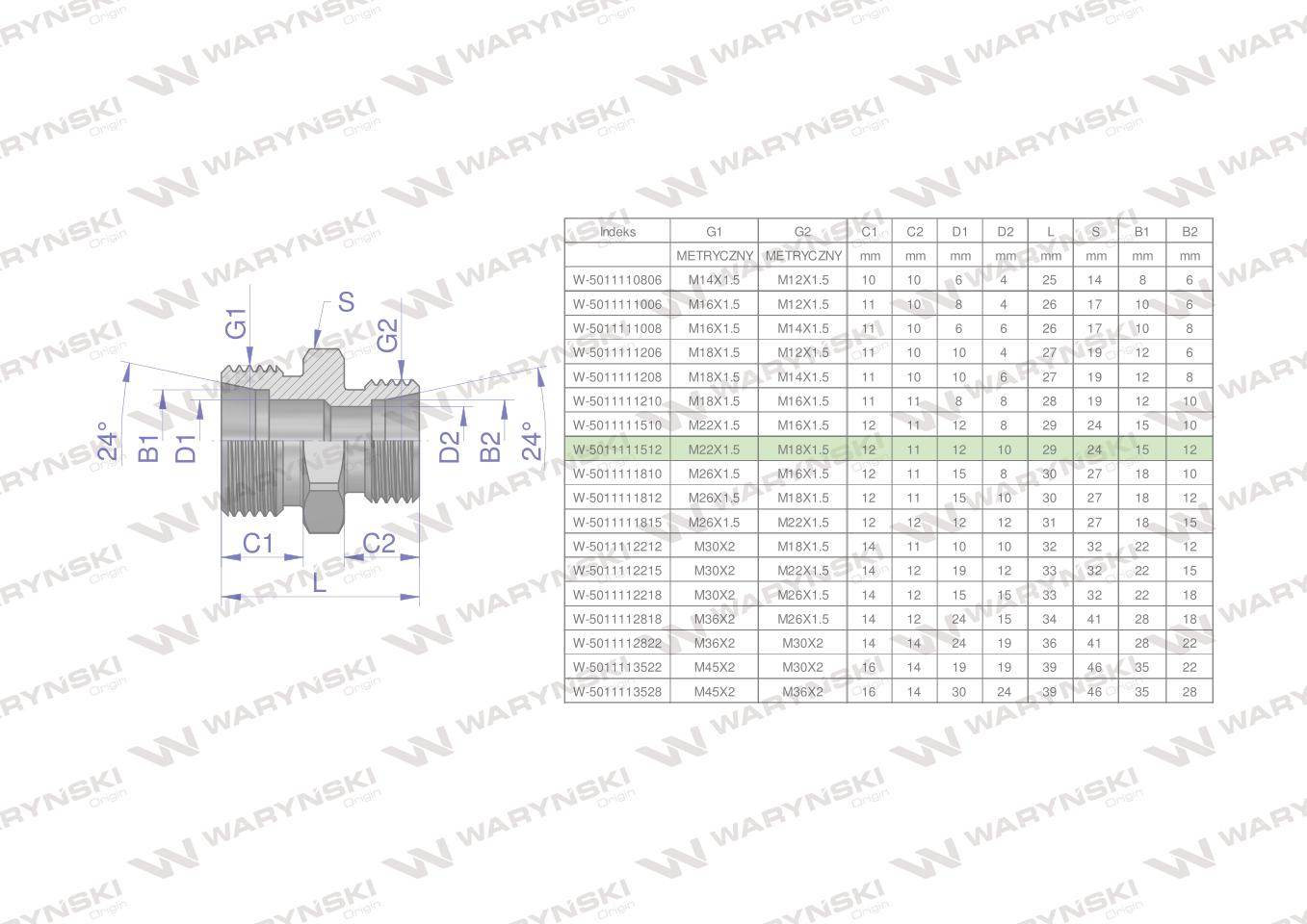 Złączka hydrauliczna redukcyjna metryczna bb 22/18 m22x1.5 15l m18x1.5 12l xg waryński 10szt