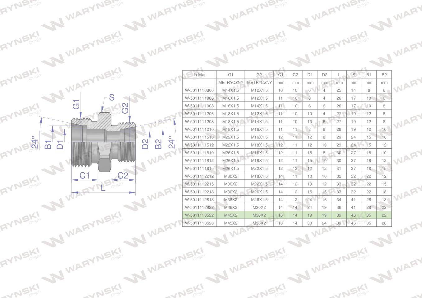 Złączka hydrauliczna redukcyjna metryczna bb m45x2 35l m30x2 22l xg waryński