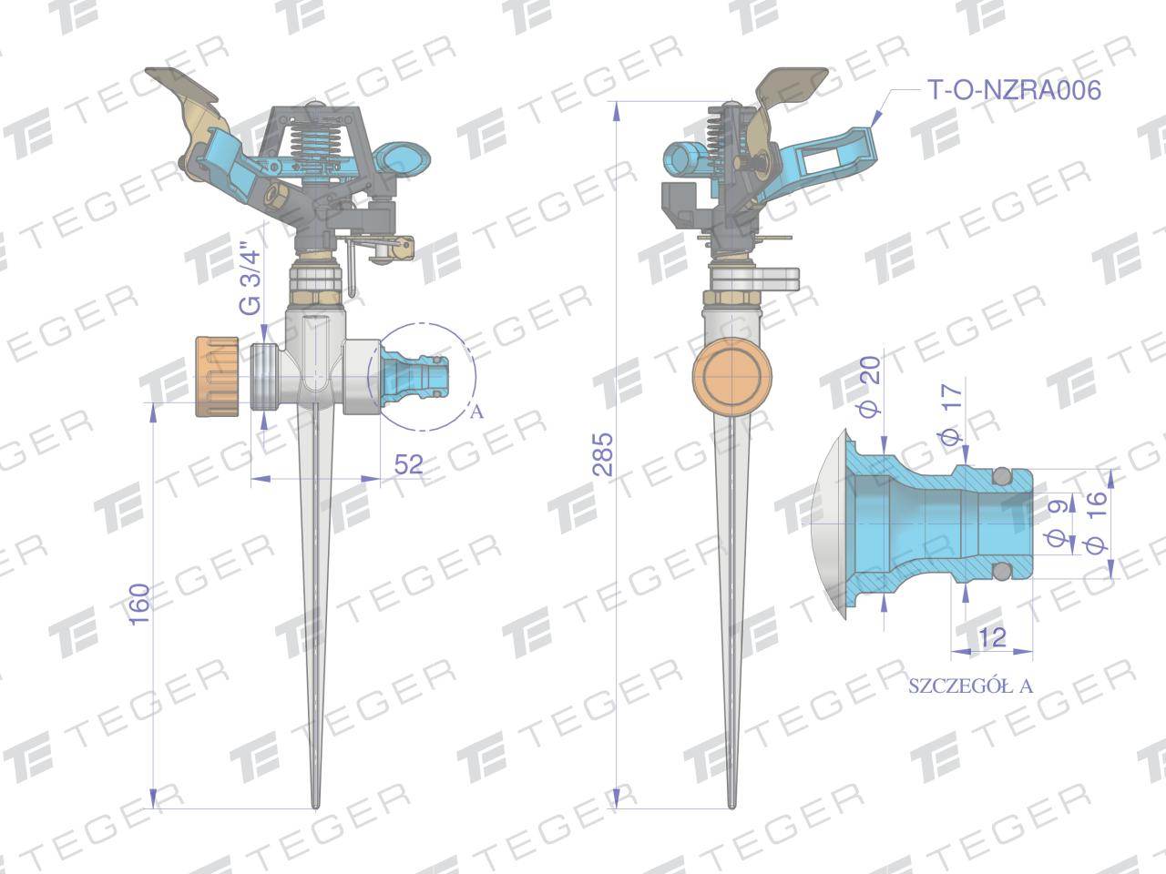 Zraszacz ogrodowy – impulsowy / metalowy / teger / wysokiej jakości zraszacz ogrodowy, wykonany z metalu. Specjalnie zaprojektowana precyzyjna dysza z mosiądzu zabezpiecza przed korozją. Idealnie nadaje się do codziennego nawadniania trawników bądź ogródków z możliwością szeregowego połączenia z innymi zraszaczami. Zasięg 14m / 610 m2 (przy 4 bar)